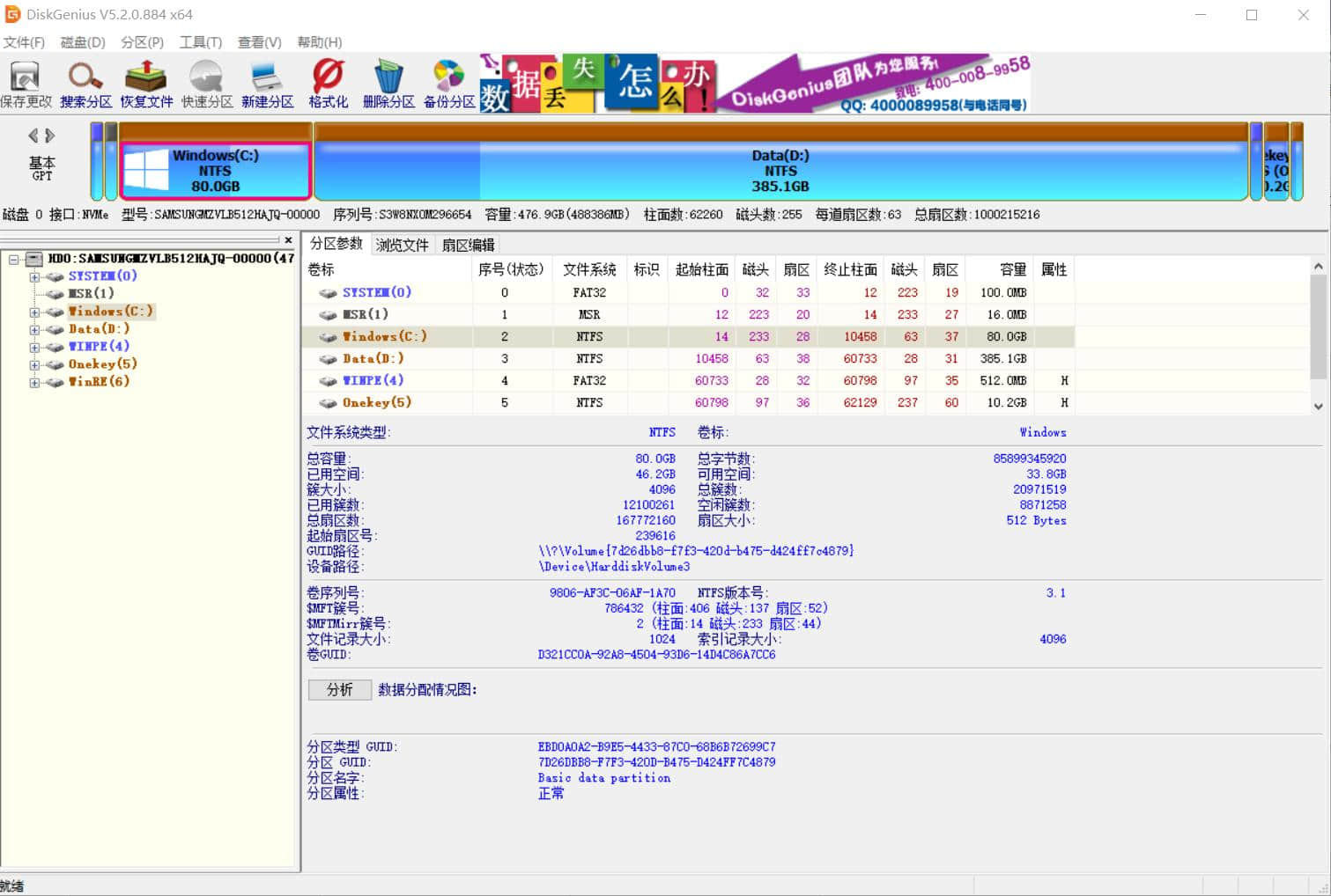 DiskGenius支持分区备份、分区还原、分区、磁盘等。