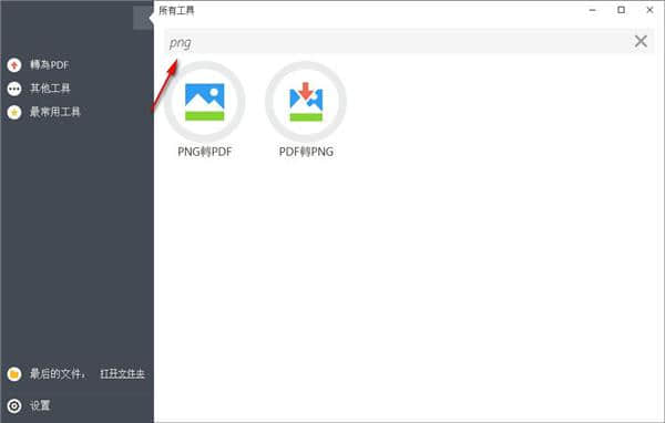 8.输入关键字以检查转换功能。在此输入png,提示png将PDF或PDF转换为png。