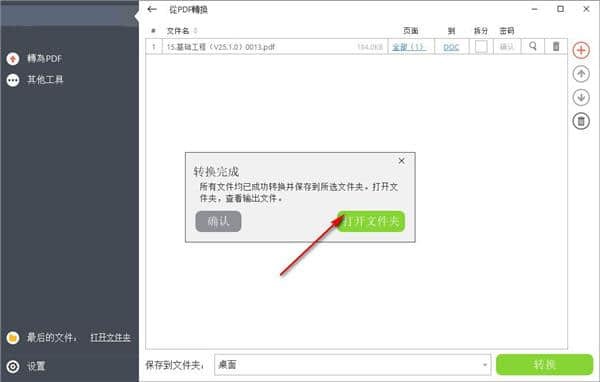 3.选择PDF转软件,提示转换为文档,也提供页码设置,点击转换。