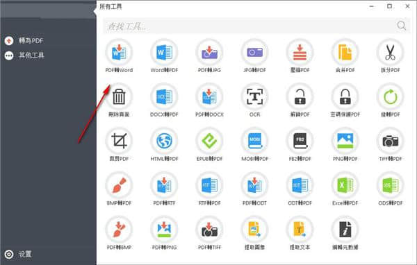 2.选择一个最常用的将PDF转换为Word的工具,然后单击打开提示您选择PDF文件。