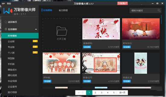 2.选择您需要的模板,或单击“打开项目”选项重新打开以前保存的项目文件。
