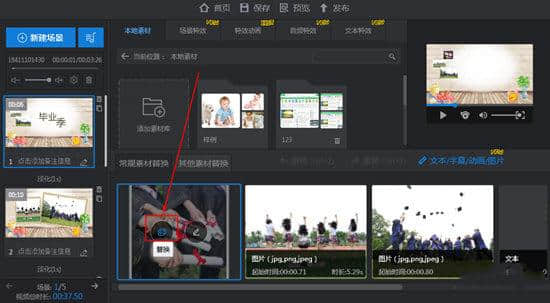 3.将鼠标直接放在模板图片上,点击“替换”选项替换图片。