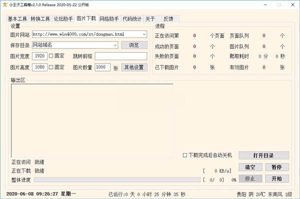 4.在软件中输入网址,设置爬虫深度,设置图片大小。