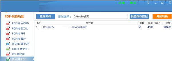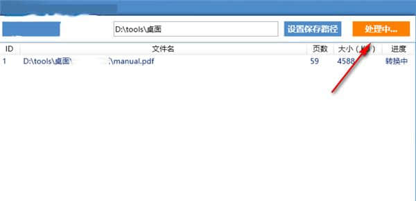 4.设置后点击开始转换。如图所示,正在处理PDF文件。请稍等。