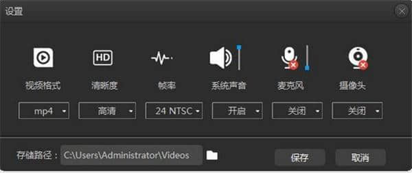 3.点击界面右侧的档位设置按钮,进入参数界面。设置基本参数,如格式、清晰度和帧速率。