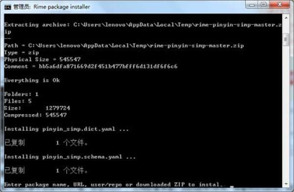 7.然后点击“获取更多方案”跳出命令输入界面。首先输入:https://github.com/rime/rime-pinyin-simp,按回车键。这一步是安装拼音,不用担心,直到弹出文件的提示。然后我们输入另一个命令:https://github.com/RIME/RIME-WUBI,,然后再次输入。当文件像以前一样弹出时,关闭页面。