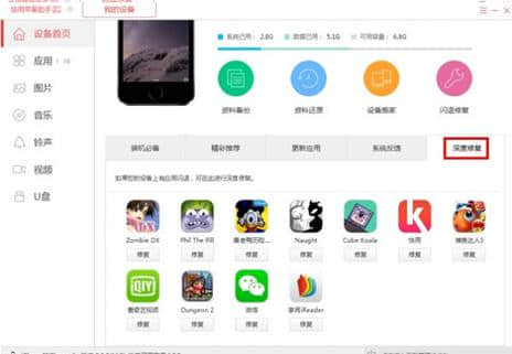 2.深度修复:选择我的设备中的深度修复选项卡,并选择要修复的应用程序。