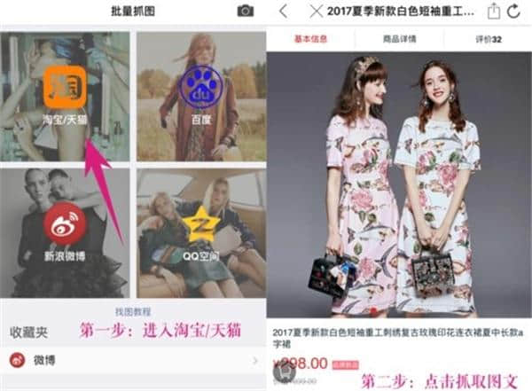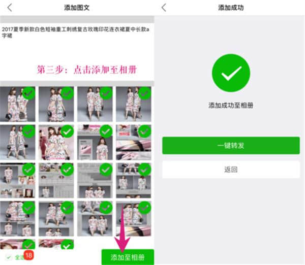 3.第三步,进入网站,点击抓取该页面的图片和文字,选择添加到相册中;一键点击转发发送到朋友圈。