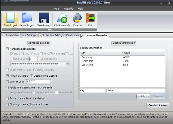 6.创建许可证文件,将受保护的程序集转换为完整版本和/或应用新的限制。您可以将(功能、客户名称、订单)存储在许可证文件中。