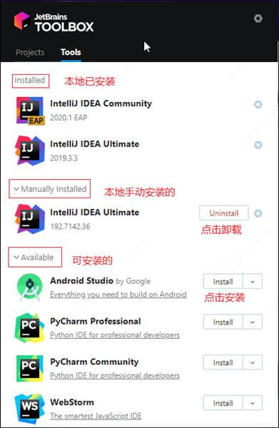 jetbrains toolbox功能介绍