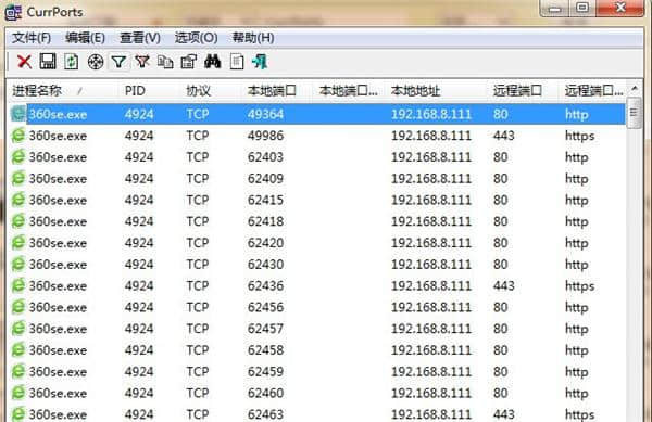 2.CurrPorts可以显示连接状态,如“正在监听”、“等待关闭”。