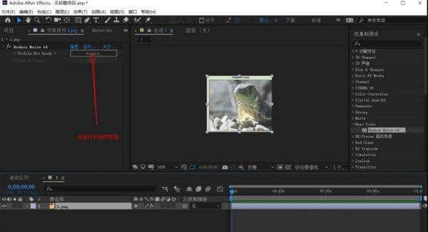 3.将“Neat Video”下的“减少噪音”拖到或“调整图层”。如果成功,可以在左侧效果控件中看到“降低噪音”。