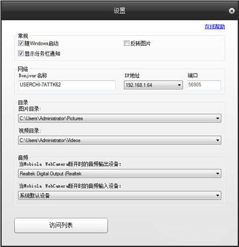 它可以在各种程序中用作网络摄像头。