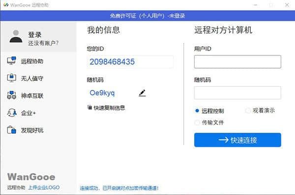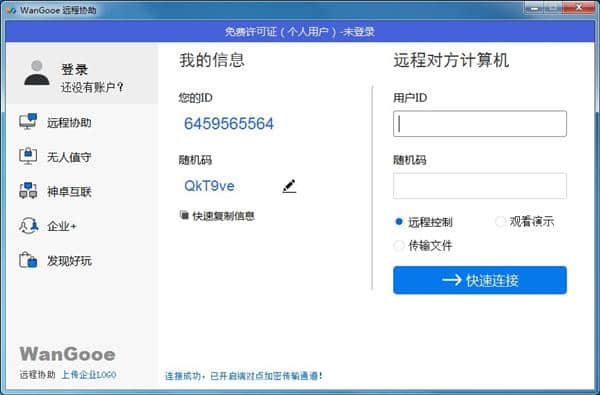 WanGooe免费版免费下载是属于应用软件的一款为你轻松控制远程办公程序,提升用户的办事效率电脑软件,创佳软件园小编给大家带来WanGooe下载和介绍,需要这款WanGooev3.0.2软件的朋友们,欢迎跟小编一起了解一下这个软件有什么不同吧!特意推荐供您下载!