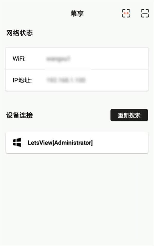 4.从扫描的设备列表中,选择以LetsView开头的电视设备名称,连接成功。