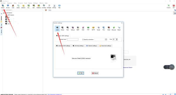 2.建立到一个的SSH连接,在会话对话框中点击SSH,切换到SSH参数页面。