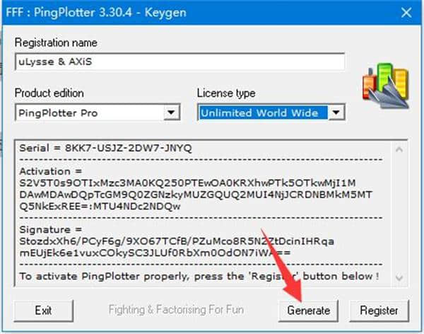 6.断开网络连接,并激活它。您可以使用-Win 7/Win 10防火墙来禁止单个应用程序联网。阻止软件快速访问互联网。打开crack文件夹,运行注册的软件,然后单击generate。