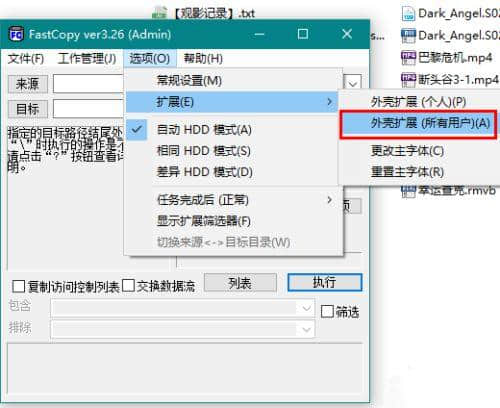 5.最后,可以用鼠标右键调用FastCopy进行文件操作。