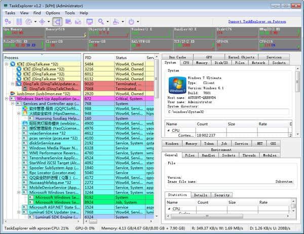 TaskExplorer这是一个高效的任务管理设备,它还可以提供各种免费的功能,让用户可以快速查看资源,并实时显示不同进程关于各种硬件的数据内容。这里汇集了各种丰富的功能,让你的日常办公可以有一个快速的处理方法,非常简单。