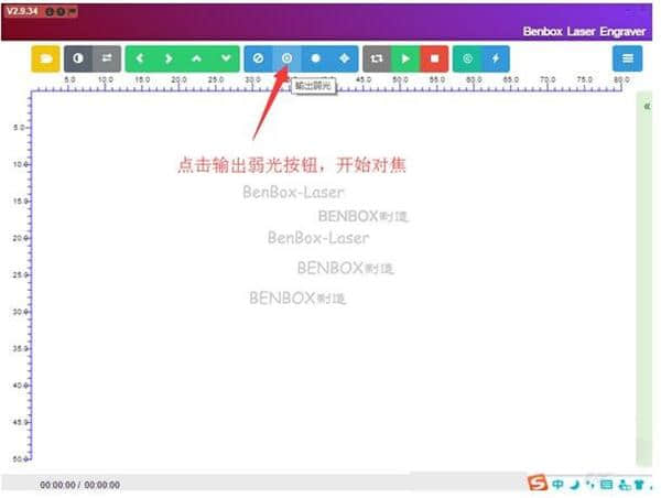 2.在软件界面,将激光头移到小纸片上方,点击输出暗光按钮,轻松对焦,开始打印。