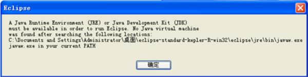 2.如果您在打开Eclipse时发现以下对话框,则表示您的计算机没有安装JDK环境。