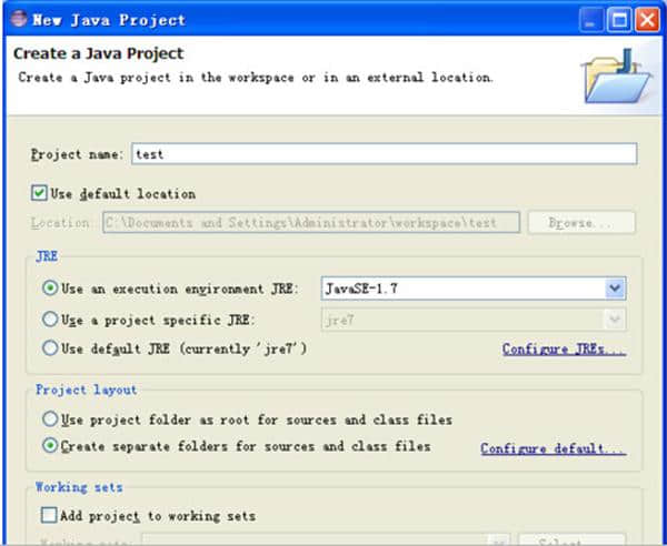 5.输入项目的名称,例如,我输入test,然后单击finish。