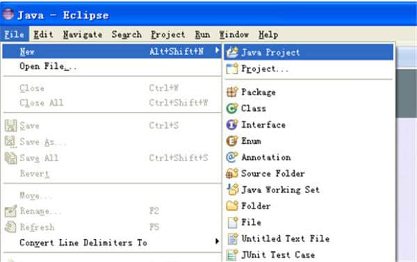 4.创建项目:选择文件-新建-Java项目,如图: