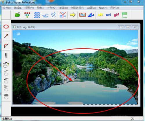 3.在图片中用鼠标画出一个选择区域作为水波的动画点。