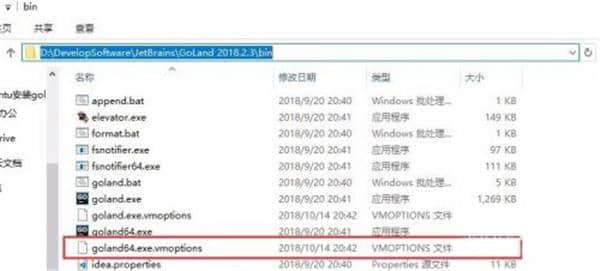 7.进入安装目录的bin目录:d:developertfwarejetbarksGoLand2018 . 2 . 3 bin。用升华文本(或任何其他文本编辑器)分别打开goland.exe.vmoptions和goland64.exe.vmoptions。
