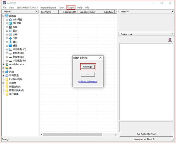 1.打开软件主界面,选择“插件->插件”;批量编辑,弹出窗口,点击添加插件。