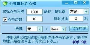 小贝鼠标连点器是一款非常实用的快速鼠标连接软件。小贝鼠标连点器可以帮助用户设置两次鼠标点击的时间间隔,移动到指定区域,按快捷键完成操作,大大减轻了用户双手的操作压力。