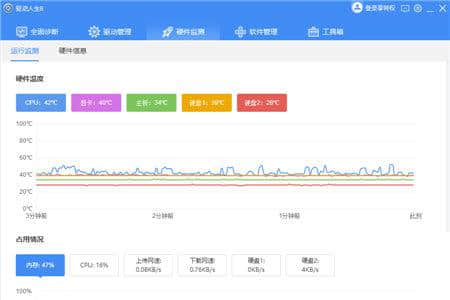 运行期间,检测计算机中每个计算机硬件的温度和占用率。