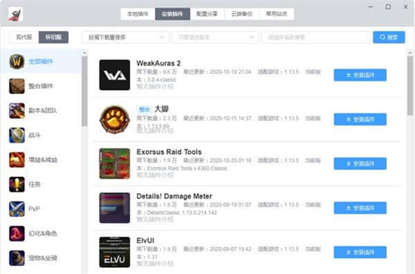 1.支持全网最流行的WOW插件集成包,全面拓展管理。