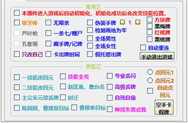 1.进入游戏后,游戏技能位置会自动初始化,方便多模块管理。