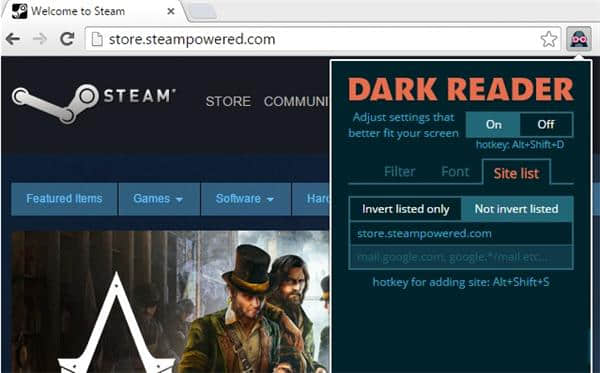 4.使用“反向颜色列表”使Dark Reader仅在列表中的网站上工作。