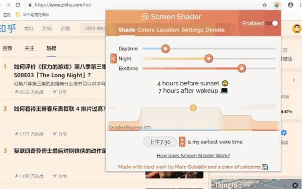 1.Screen Shader插件会随着一天的变化自动调整浏览器屏幕颜色。