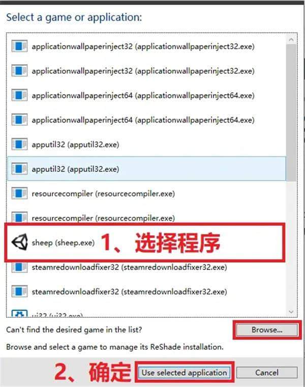 2.选择游戏程序,点击上图中间的按钮进行选择。
