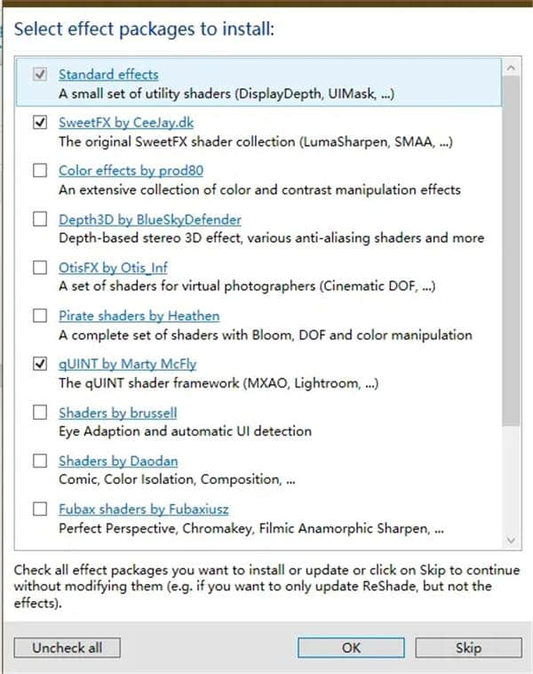 4.选择并安装你需要的特效包和特效自动优化程序。