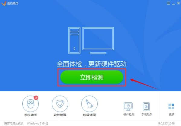 1.首先在本网站下载安装驱动精灵(通用网卡版本),双击打开。打开后,我们可以先用驱动精灵的智能检测功能检测电脑,方便查看哪些驱动可以更新。然后我们可以点击“立即检测”按钮,等待电脑检测。然而,这可能需要一段时间。每个人的电脑都不一样,可能也不一样。耐心等一会儿就好。