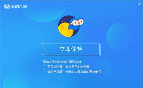 4.驱动人生安装完成后,点击【立即体验】打开软件。建议取消白贝浏览器和爱奇艺。