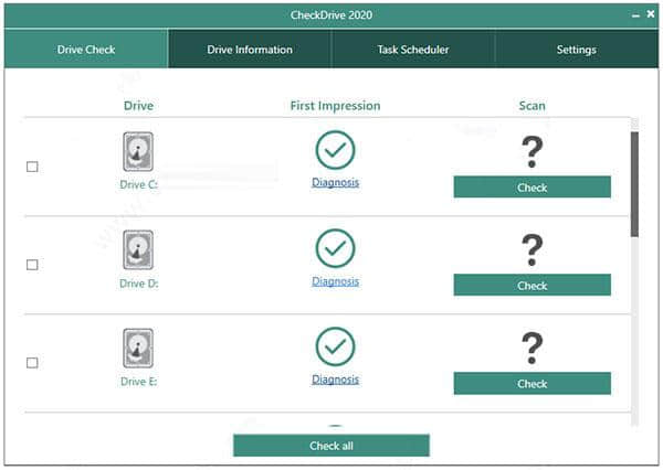 CheckDrive免费版免费下载是驱动工具的一款为你带来全面的数据硬盘修复工具电脑软件,创佳软件园小编给大家带来了CheckDrive下载以及软件相关信息,相信你正在寻找这样的软件,这款CheckDrivev2018.1.2.小编还亲测了使用过程,还等什么?赶快点击下载按钮免费下载吧!