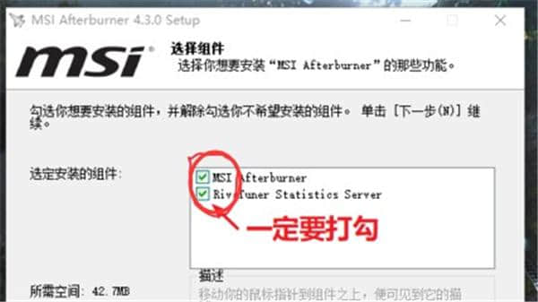 2.请注意在安装过程中要安装哪些组件,并在rivatuner统计之前选中该框。