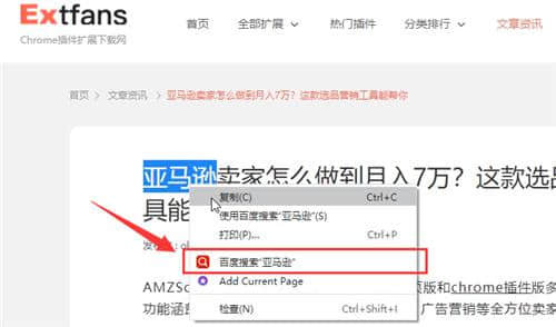 选择要查询的文本内容,在菜单中选择相应的搜索选项。