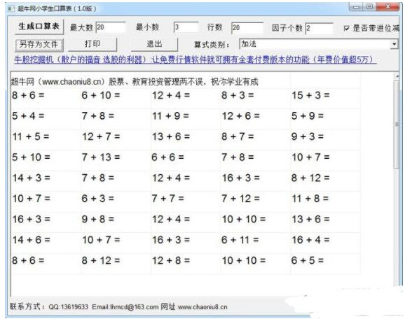 让自己的东西给孩子任意四张算术表,从日常练习中逐步提高孩子的书面计算、口头计算、心算能力。它是教师教学和学生提高素质的实用软件。