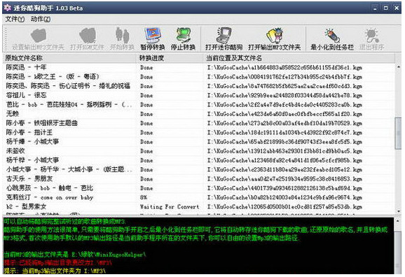 迷你酷狗助手是酷狗软件的一款实用的音乐格式转换软件。迷你酷狗助手可以将酷狗的KGM文件格式转换成正常的MP3文件格式,方便用户在本地下载播放,非常简单方便。