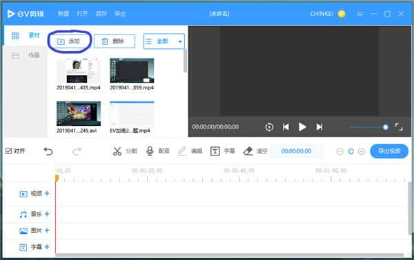 1)打开EV剪辑软件,添加和导入所有需要的材料;