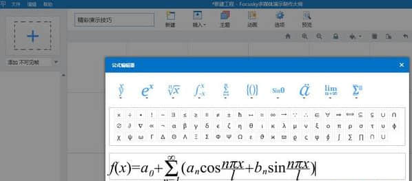 编辑数学和物理公式自Focus KY 2 . 5 . 0版起,就有编辑插入公式的功能。请看下面的教程:1。单击工具栏上的“插入”->;公式,这时会弹出公式编辑器。