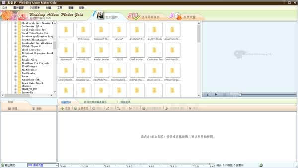 使用起来比较简单,不需要专业经验;集成的婚礼相册工具可以添加适合电视播放的动感音乐和过渡效果的高分辨率格式;专业的好莱坞风格的DVD菜单模板可以用文字和艺术剪辑来装饰婚纱照。