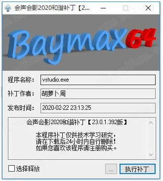 1.将补丁文件放入惠生惠盈2020的安装目录中,双击打开,点击执行补丁。