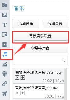 此外,还可以通过右侧工具栏上的“音乐-背景音乐设置”按钮添加背景音乐,如图: